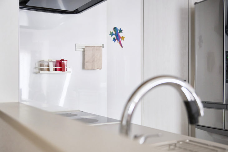 タッチレス水栓やマグネットボードで、より機能的なキッチンに。