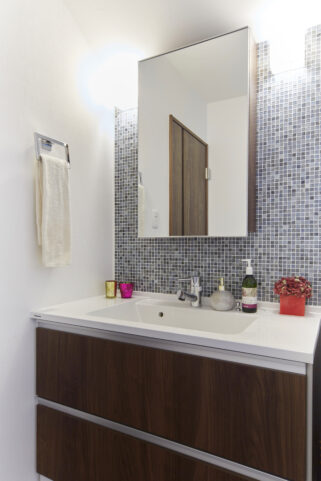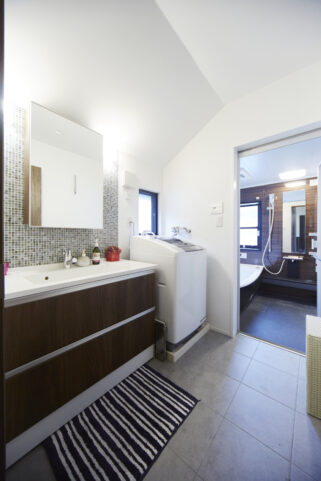 浴室と隣接する動線もスムーズで、水まわり全体に一体感が生まれている。