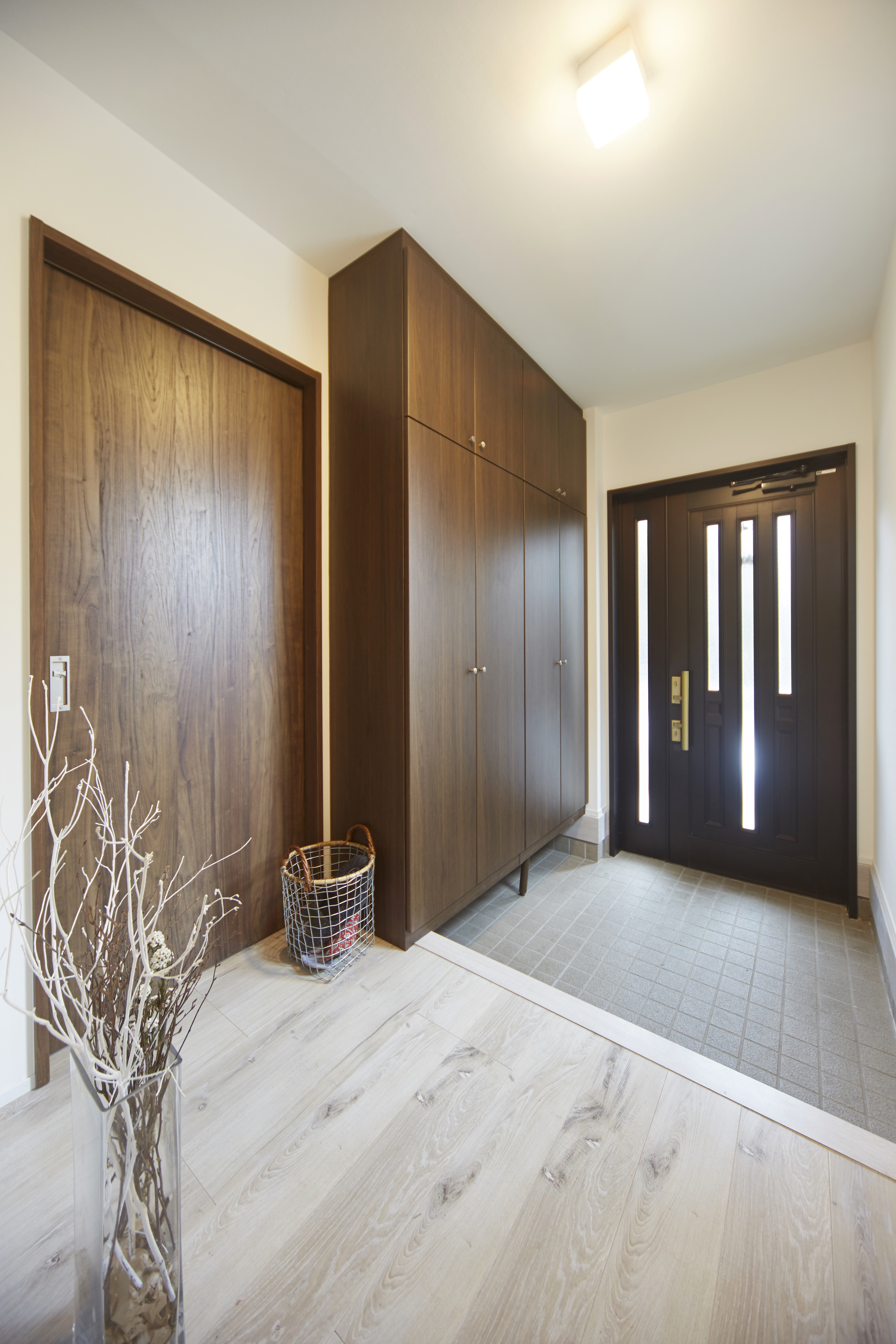 収納の扉を変え、住まい全体の雰囲気を合わせた玄関ホール。
