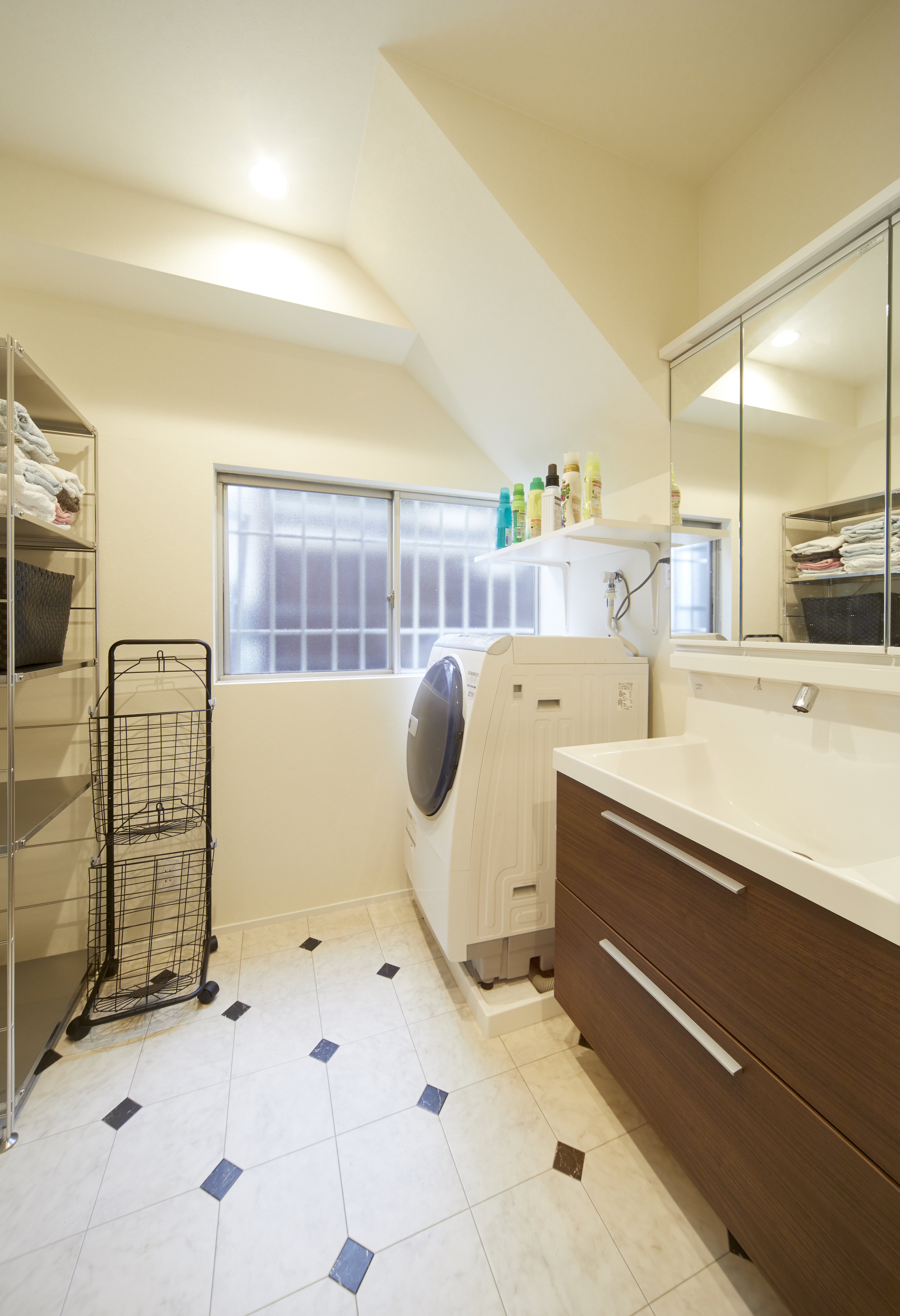 階段下を活かした洗面室。